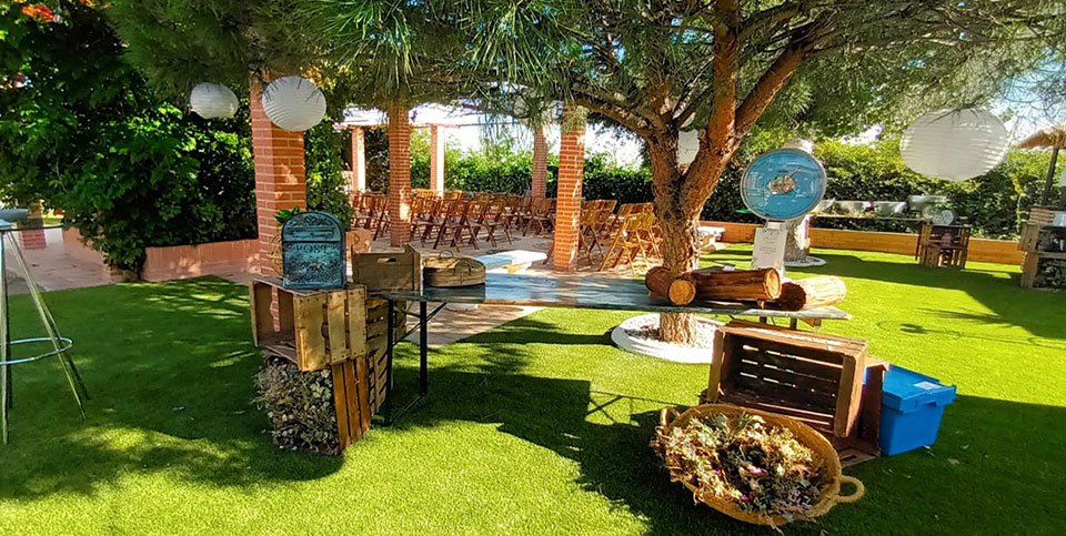 Elegante finca rústica, muy próxima a la carretera, con buen acceso, totalmente acondicionada y equipada para la celebración de cualquier evento.